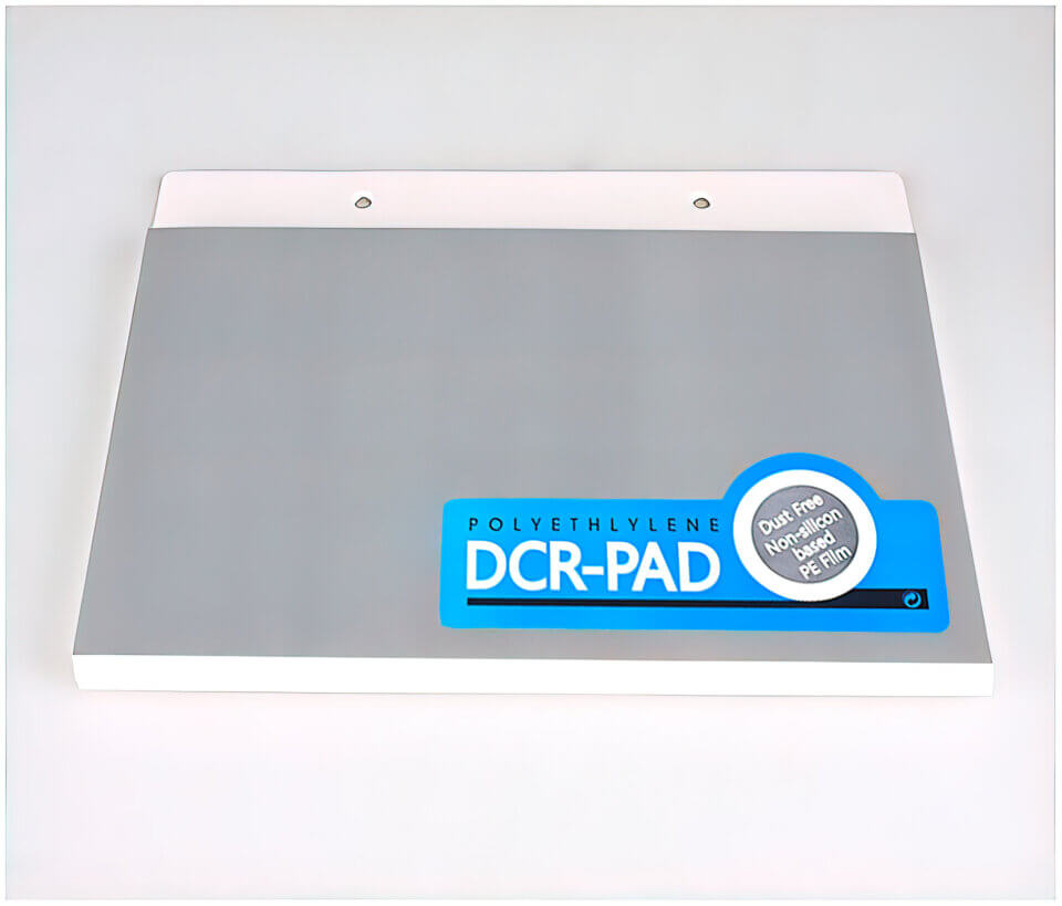 DCR podložka (DCR pad) obsahuje 50 nebo 100 lepivých listů, které se používají k čištění lepivých válečků. Předností naší podložky je speciální tvrdá podložka, na které jsou listy umístěny, včetně dvou děr na uchycení. Vyrobena z polyethylenu, neobsahuje silikony, akrylové lepidlo. Vyrábíme v rozměru 335 x 240 mm včetně tvrdé podložky.